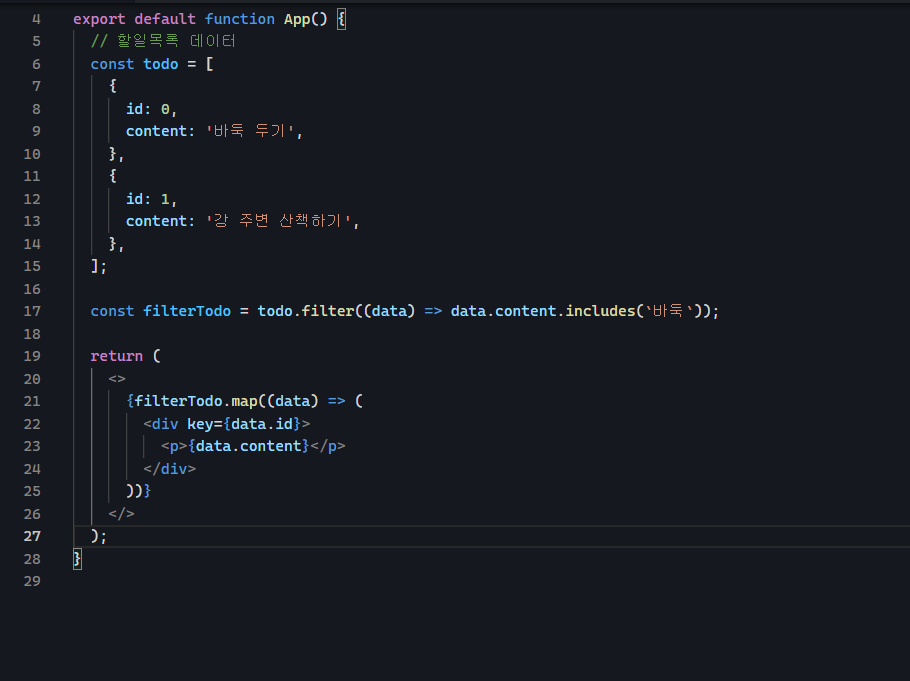 JSX로 이루어진 요소가 한개이상이라면 6 , 7 번째 줄 코드를 다음과 같이 묶어야합니다.