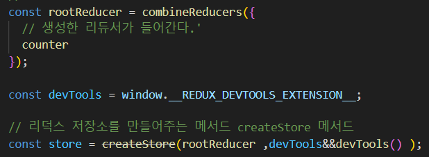 (1) 리덕스의 combineReducers , createStore 이 configStore로 흡수 되었습니다.