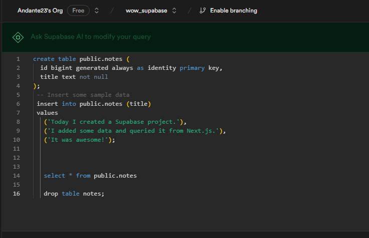 ( 1 ) VsCode 프로젝트를 세팅 / supabase 가입 하고 프로젝트 생성해주세요 ( 참고 를 기반으로 해주세요 )