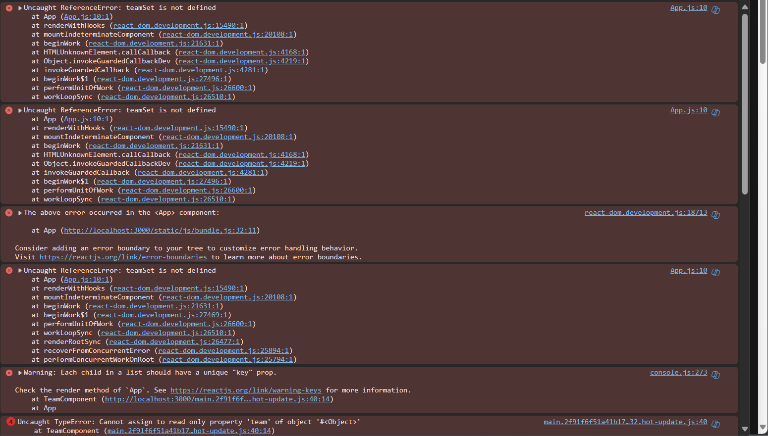 props.team = "크하하하"; // 읽기 전용 프로퍼티에 값 대입