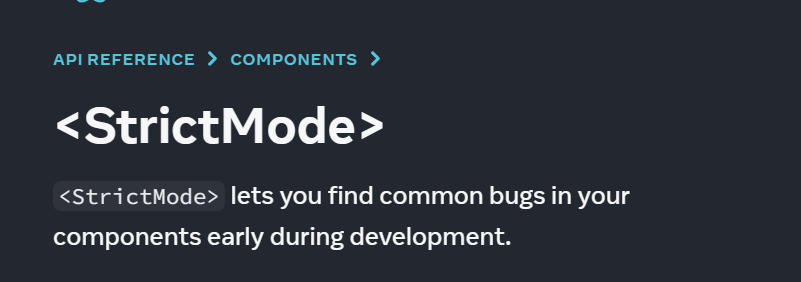 StrictMode 는 개발 초기에 발생할 수 있는 버그들을 찾아줍니다. 라고 나왔습니다.