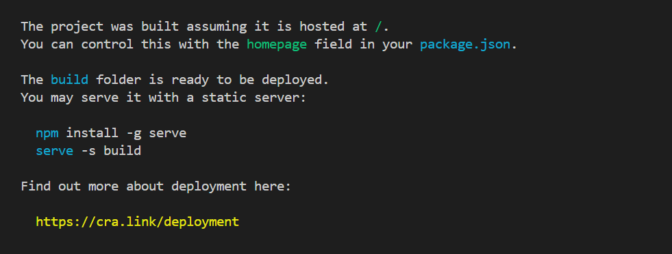 2. build가 종료되면 배포(deploy) 관련 도움말이 끝에 나옵니다.