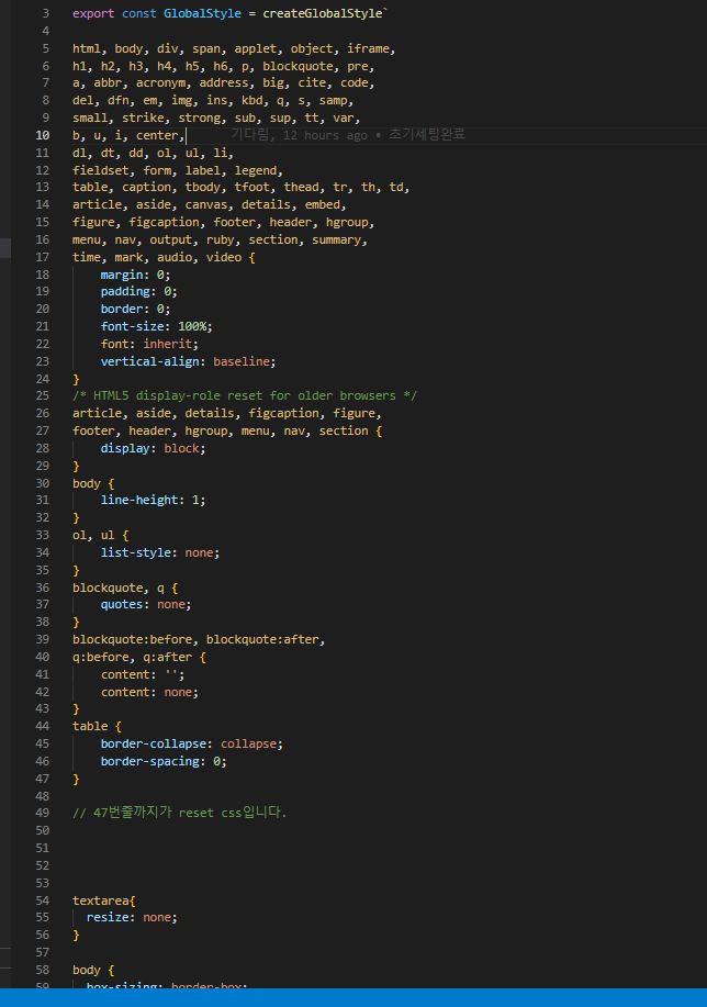 [ 1 ] reset.css 를 스타일드 컴포넌트로 만들었습니다.