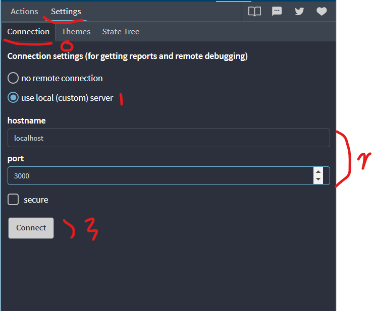 [ 3 ] use local server 들어가서 hostname 과 port 입력해주고 Connect 하기 (해주어얌)