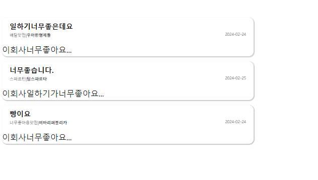 회사 다니시는 분들의 회사에 대한 리뷰글을 담은 임시 데이터를 메인 화면단에 나타내기